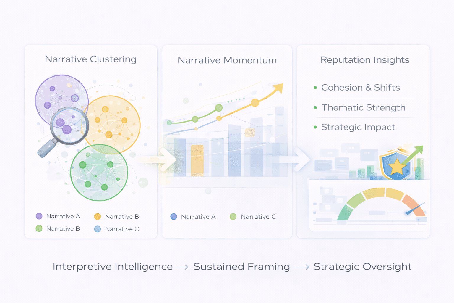 By examining narrative cohesion, directional shifts, and accumulating meaning, reputation leaders can move beyond surface awareness and make informed decisions grounded in narrative structure rather than isolated coverage signals.