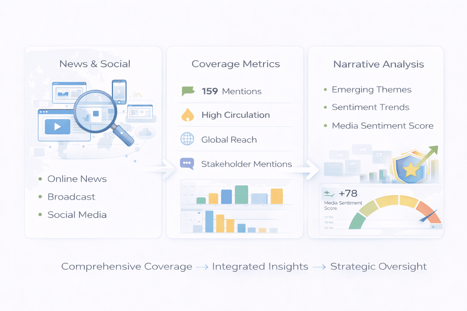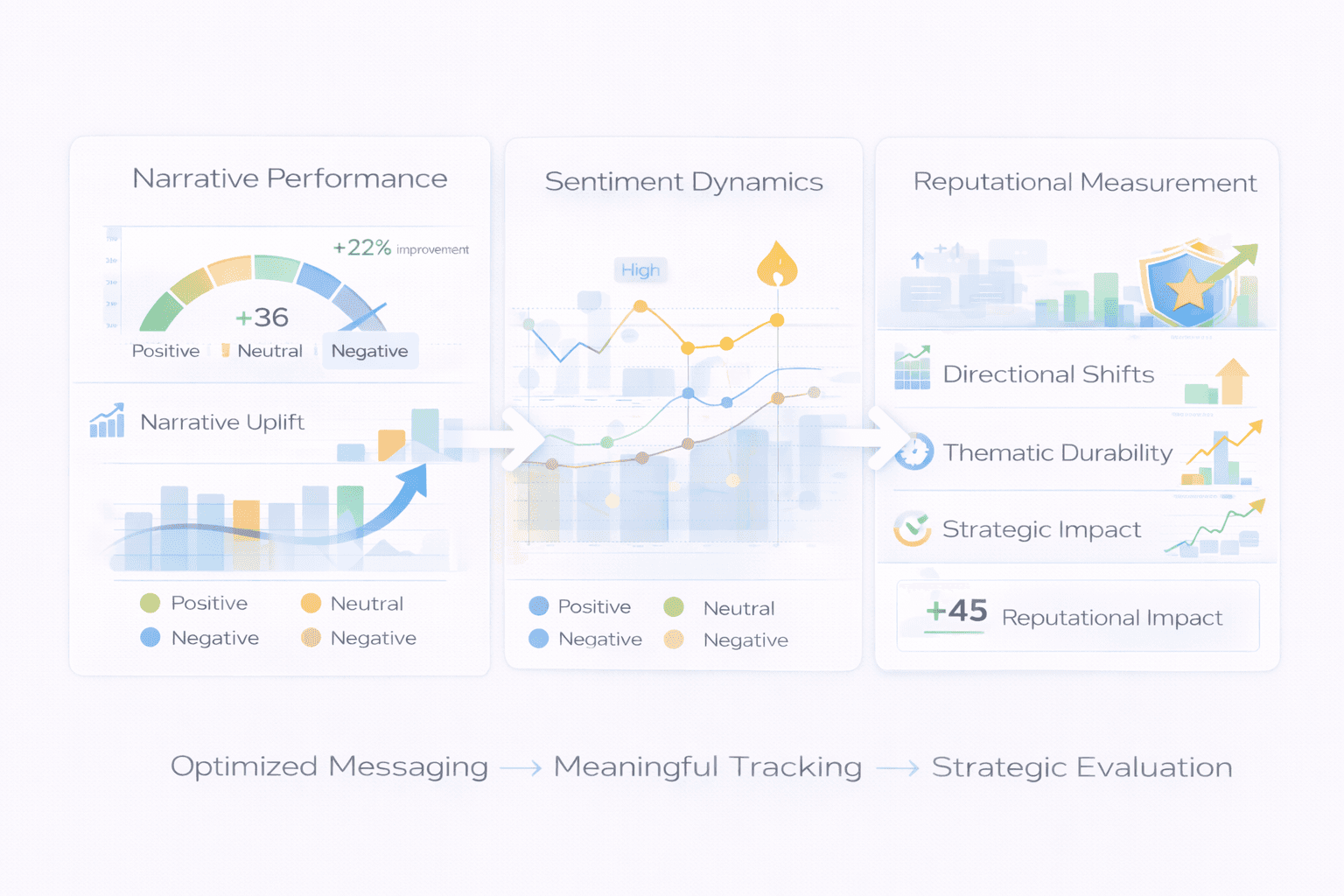 Structured analytics transform narrative movement into measurable performance indicators. This enables leadership teams to assess reputational direction, identify material changes, and evaluate whether strategic adjustments are producing meaningful outcomes.